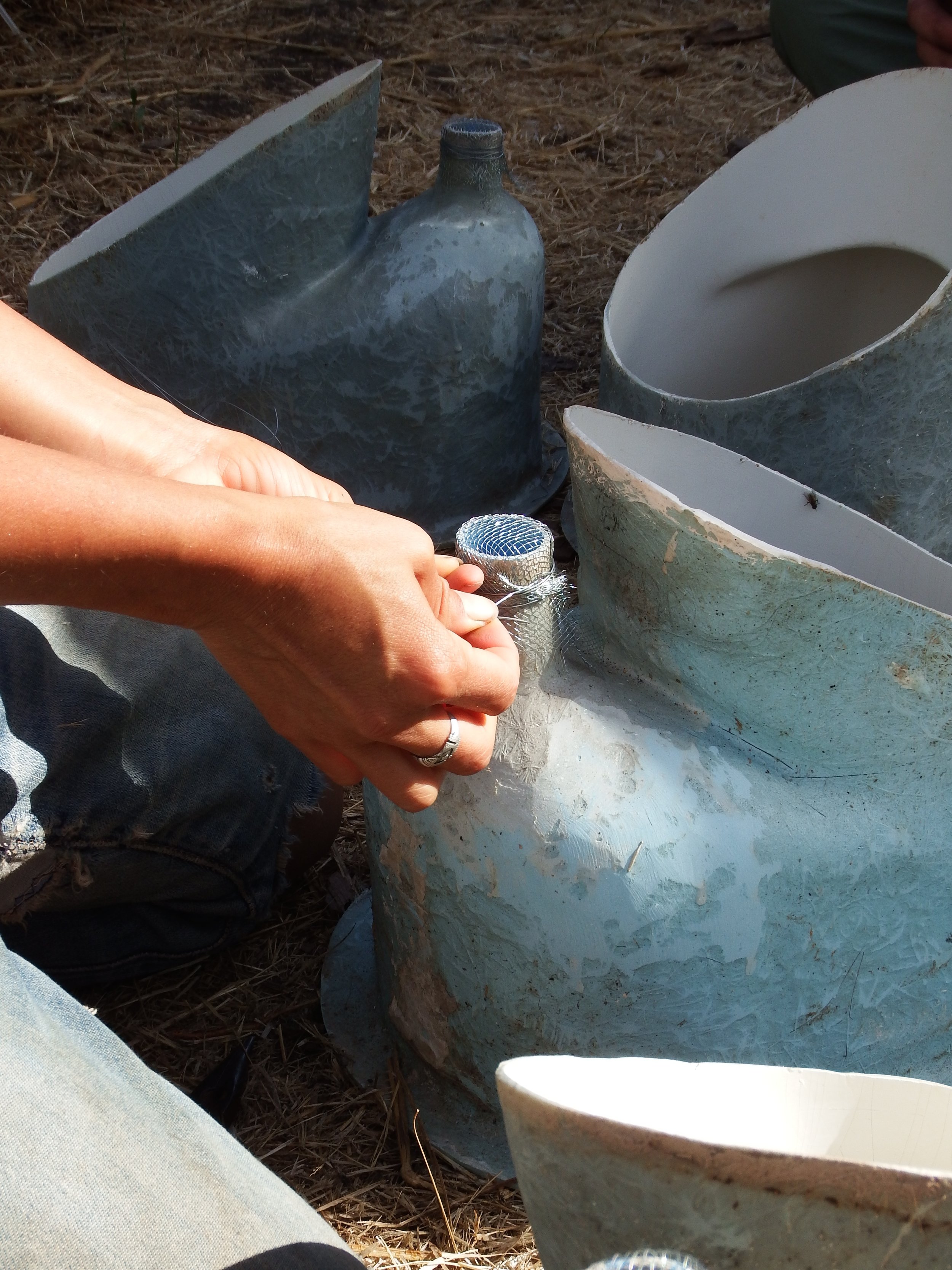 4. Make Biochar for one of the layers for the biofilter. It was a wonderful addition to have two folks who were experienced in making biochar. They took on the task of finding biomass to bun in a low oxygen environment (the 55 gallon metal drum). Biochar will increase the productivity of the biofilter by housing millions of micro organisms that will work to break down and process the nutrients from the urine.