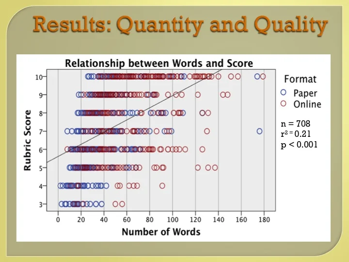 Data was collected from students (N=189) over the span of four semesters. The sampling frame from each semester was stratified according to students’ end of semester grade. Students were randomly selected from those who earned an A, B, or C. A three-part rubric (i.e. articulation, appropriate content, and accurate explanation) was developed to evaluate the quality of short answers. Average rubric scores for the online LJs were higher than those completed on hardcopy. Three of four questions selected for assessment showed statistically significant improvement in the online format. The average number of words written online was significantly higher for all questions (p≤0.001). Students wrote approximately 50% more words when completing LJs with the online version. Linear regression between number of words and score indicated moderate correlation (r2=0.21, p< 0.001). Findings support the use of structured pre-class activities through the use of an online classroom management tool as an effective way to better prepare students for lecture.