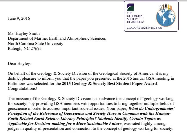 Thesis Title: What do Students Find Relevant in an Introductory Geology Course? Implications for Changing Students’ Attitudes About the Relevance of Geoscience in Society.